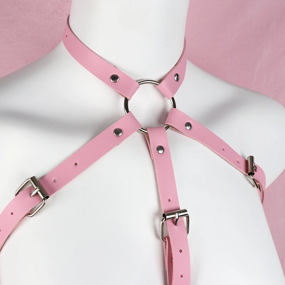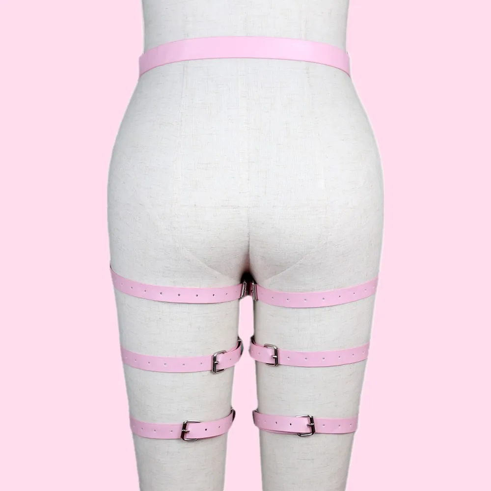 Розовая кожаная подвязка для женщин, пастельные ремни в готическом стиле, ремень на талию в стиле панк, нижнее белье, регулируемый размер