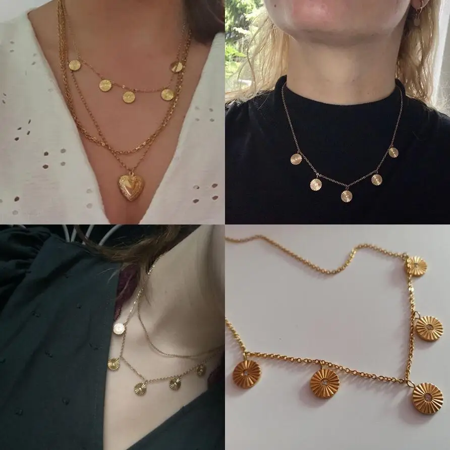 Ожерелье-цепочка Kuikawa из нержавеющей стали в гавайском стиле с 5 круглыми подвесками как пляжные украшения для девушек