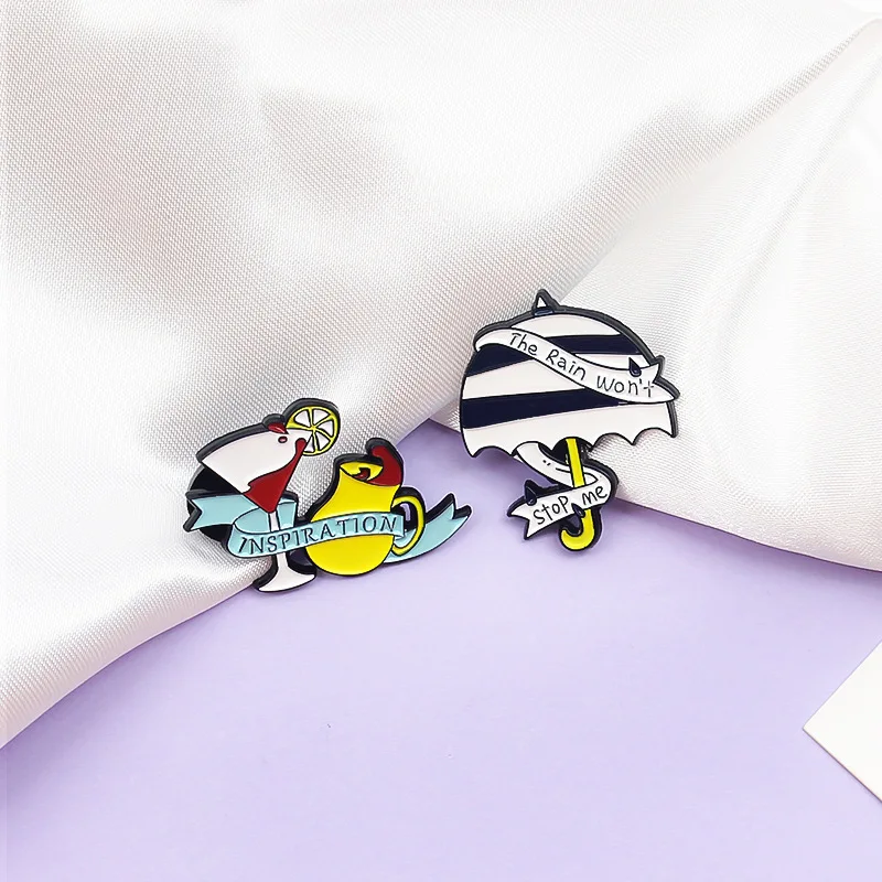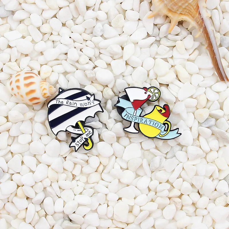 Брошь на лацкан с эмалью в виде зонтика и винного бокала