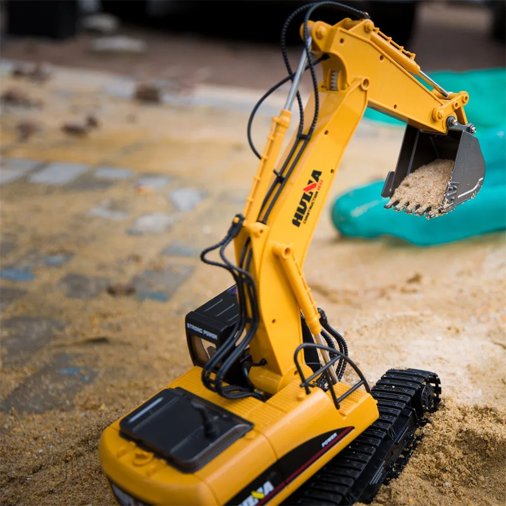 15 Канальная строительная машина-это не маленькая детская игрушка, она действительно может копать в любом Направление с 3 мощными отдельными двигателями на его копании и с Его сверхмощная стальная Лопата, транспортировка грязи, песка и т. д. из одного места в Другой или на самосвал. Топ гоночный экскаватор движется вперед, Назад, вправо, влево и кабина поворачивается в 680 градусов вращения. Нет ограничений В любом направлении.