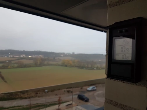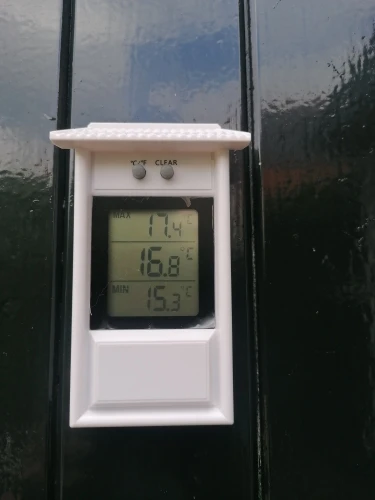 Fast shipping. Термометр прибыл очень хорошо упакованным и в отличном состоянии. У него маленькая пленка для защиты экрана. Работает с двумя батареями AAA (R3). Есть две кнопки, одна для выбора градусов Цельсия или Фаренгейта, а другая для сброса минимальных и максимальных температур. Единственная проблема в том, что он отмечает на один градус меньше, проверенный другими термометрами. Нет кнопки для калибровки температуры.