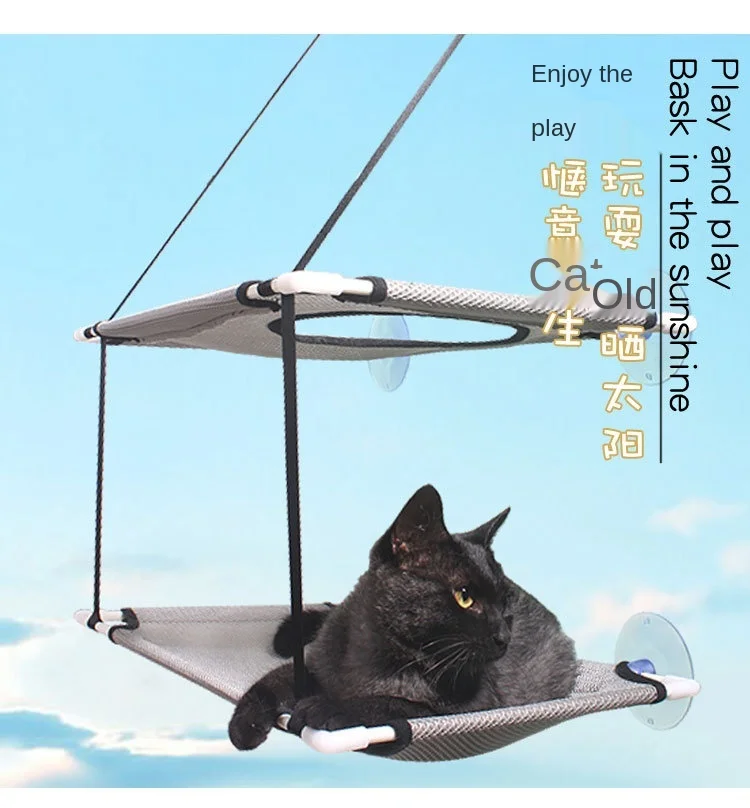 Кошечка с гамаком на балконе для кошек, 20 кг, кошачий домик, солнечный домик, для домашних животных, водонепроницаемая ткань, кровать для кошек, лазание, спальный матрас, однослойный, двойной кошачий помет