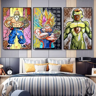 Плакат в стиле японского аниме, мультфильм Dragon Ball, холст, наст...
