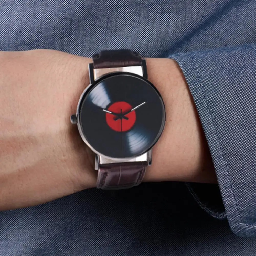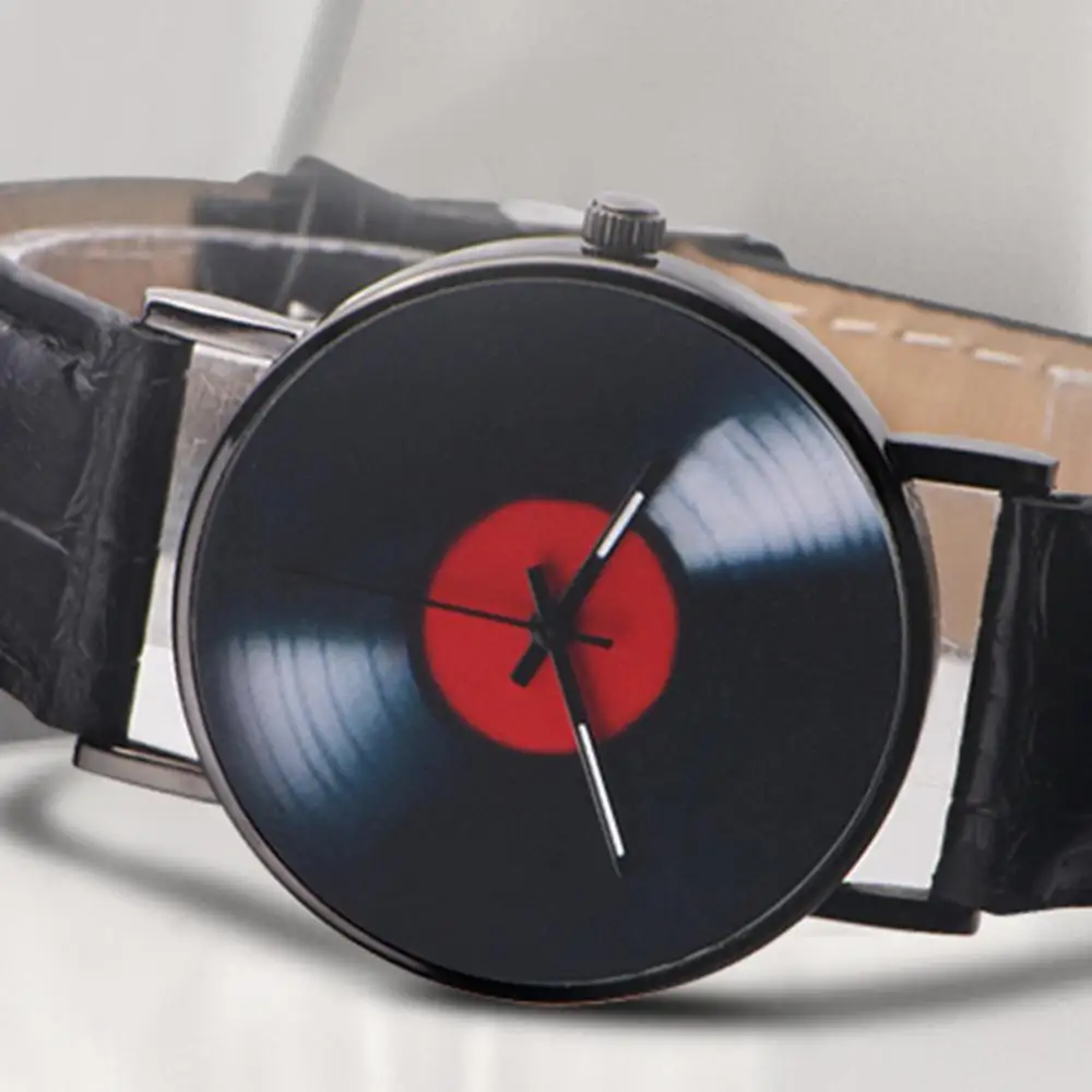Черный циферблат с красным циферблатом среднего дизайна, выглядит как Виниловая пластинка в стиле ретро, очень особенная.