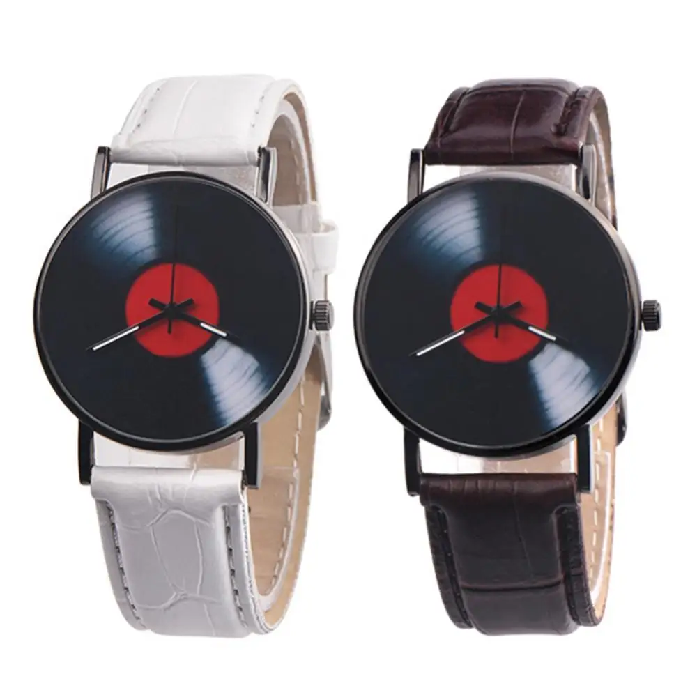 Лидер продаж, винтажные Ретро Модные виниловые часы с Циферблатом из искусственной кожи, мужские и женские Аналоговые кварцевые наручные часы для знакомств, подарок