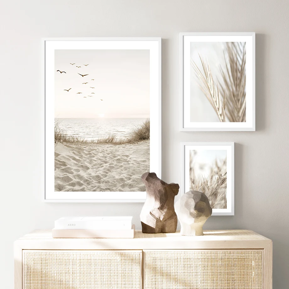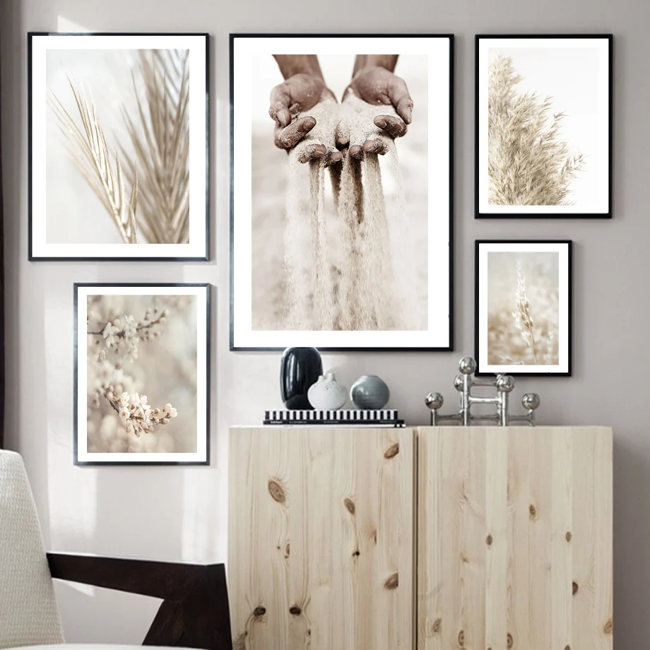 Бежевый песок, пляж, цветение, тростниковая трава, настенная живопись, холст, картина, Северный плакат, настенные фотографии для декора гостиной