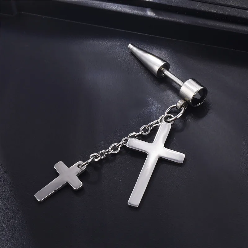 Хипстерские серьги для пирсинга в стиле рок-стрит, готические украшения, для мужчин и женщин, серьги в стиле панк, из нержавеющей стали, крест, перо, кисточка, длинная цепочка