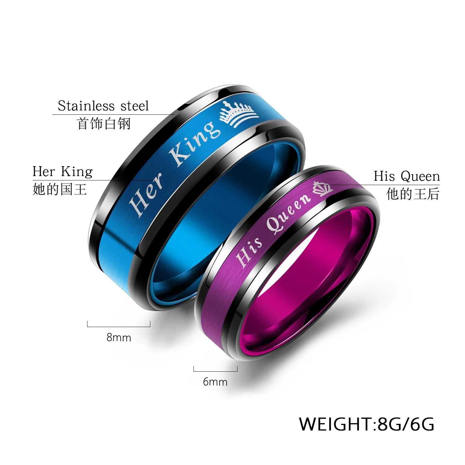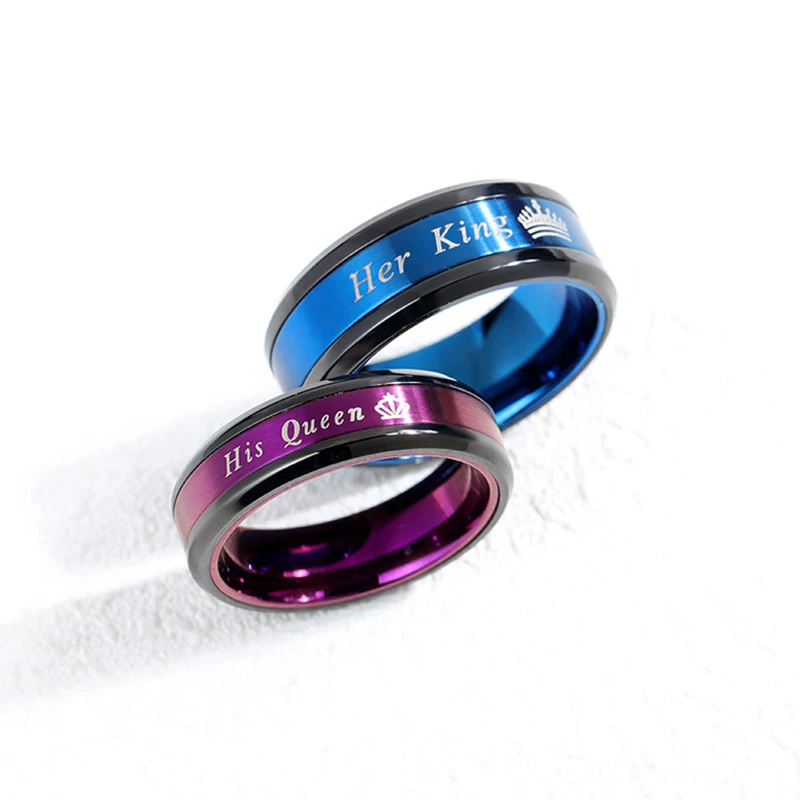YWSHK модное кольцо для пары с короной, королевой, короной, из нержавеющей стали, обручальное кольцо для женщин, мужчин, ювелирные изделия, кольцо синегофиолетового цвета