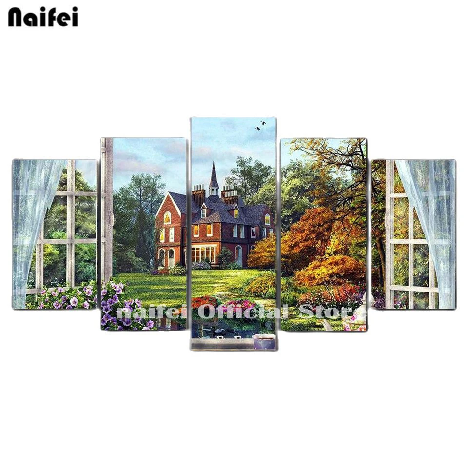 Набор для алмазной вышивки сделай сам, набор из 5 квадратных и круглых страз для вышивки крестиком, с изображением дома, цветов, перед окном