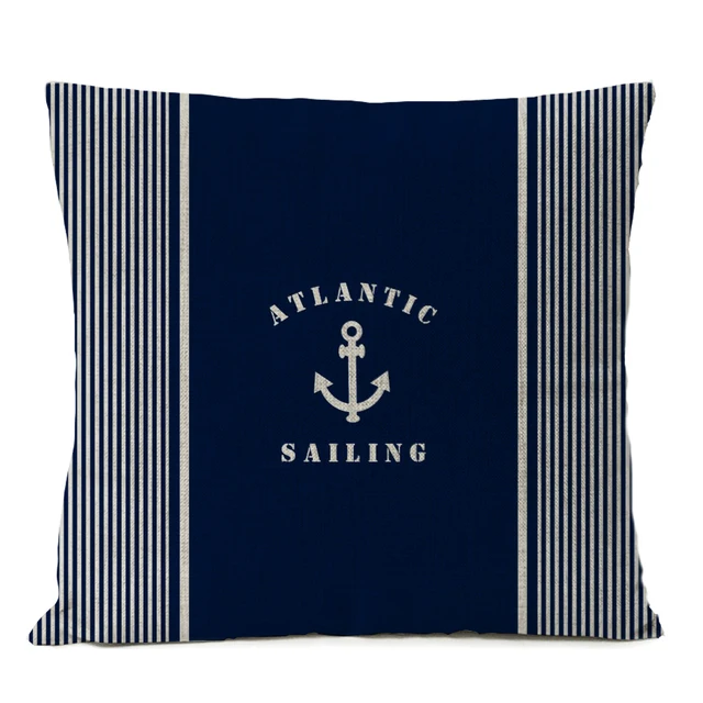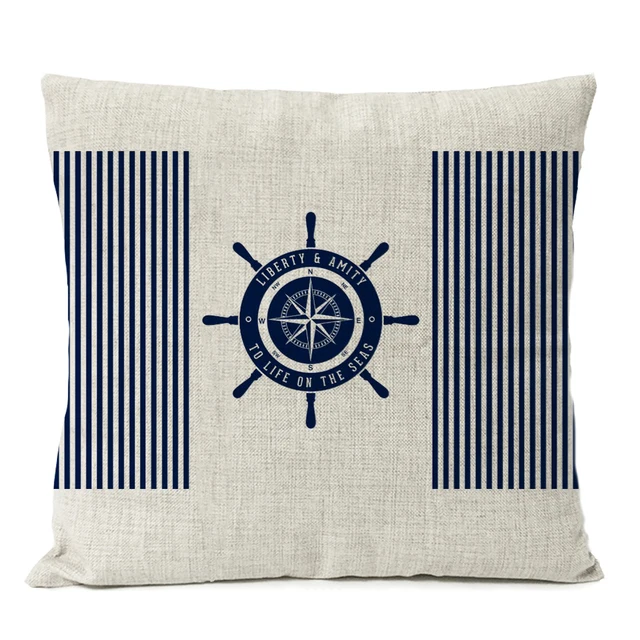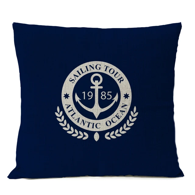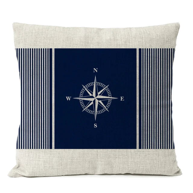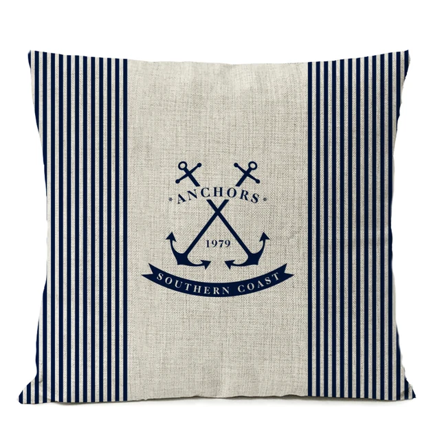 Навигации Голубой Якорь и компас, накидка для подушки, морской рыбы оболочки льняная Подушка Чехол дома декоративные Средиземноморский чехол для подушки