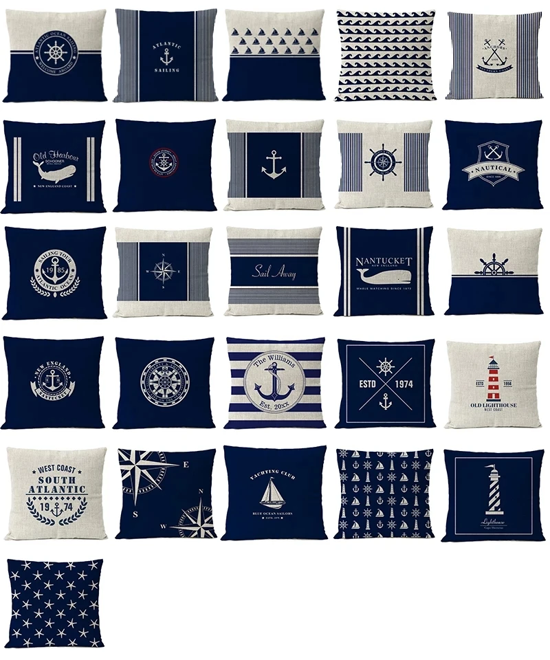 Навигационная синяя искусственная наволочка для подушки Морская ракушка льняная наволочка для подушки домашняя декоративная средиземноморская наволочка для подушки