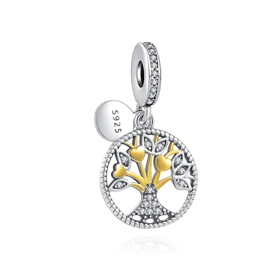 Горячая Распродажа 100% 925 пробы серебряные двухцветные бусины в виде семейного дерева подходят для Оригинальных Украшений Pandora Браслеты с подвесками для женщин DIY