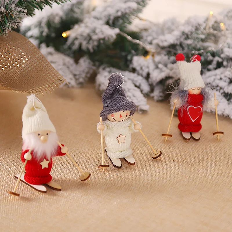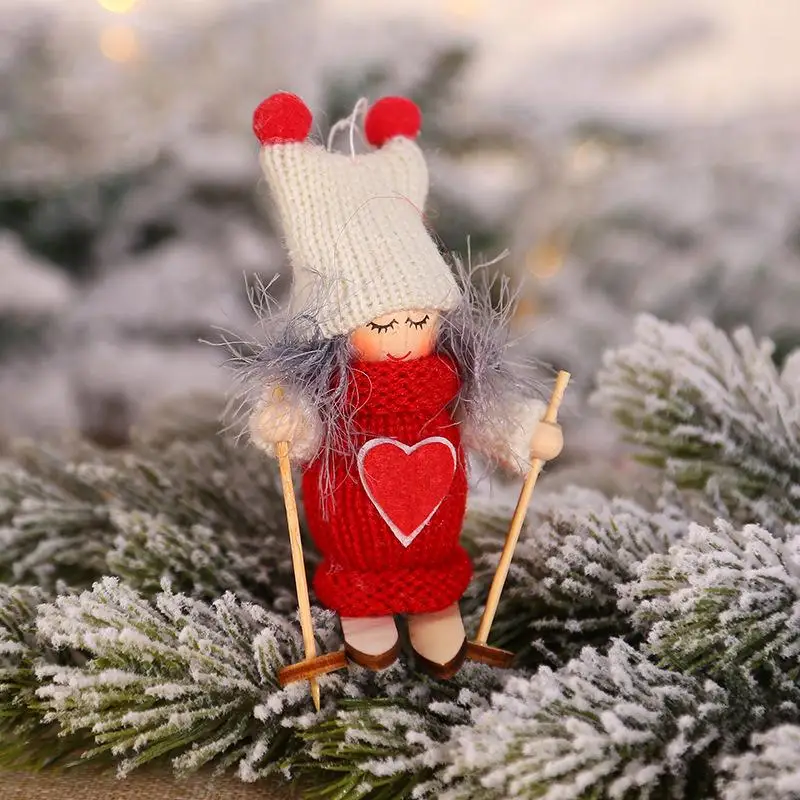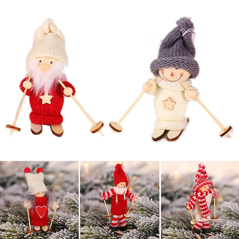 Новогодние украшения, деревянные куклы-лыжи, подвески на елку, Мини-куклы, рождественский подарок для детей, для дома, Рождественское украшение