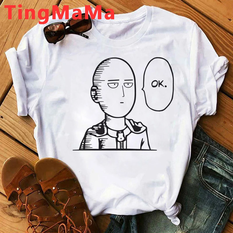 Популярная футболка с японским Аниме One Punch Man, мужские кавайные Мультяшные психографические футболки 100, Забавные топы в стиле Харадзюку унисекс, мужские футболки