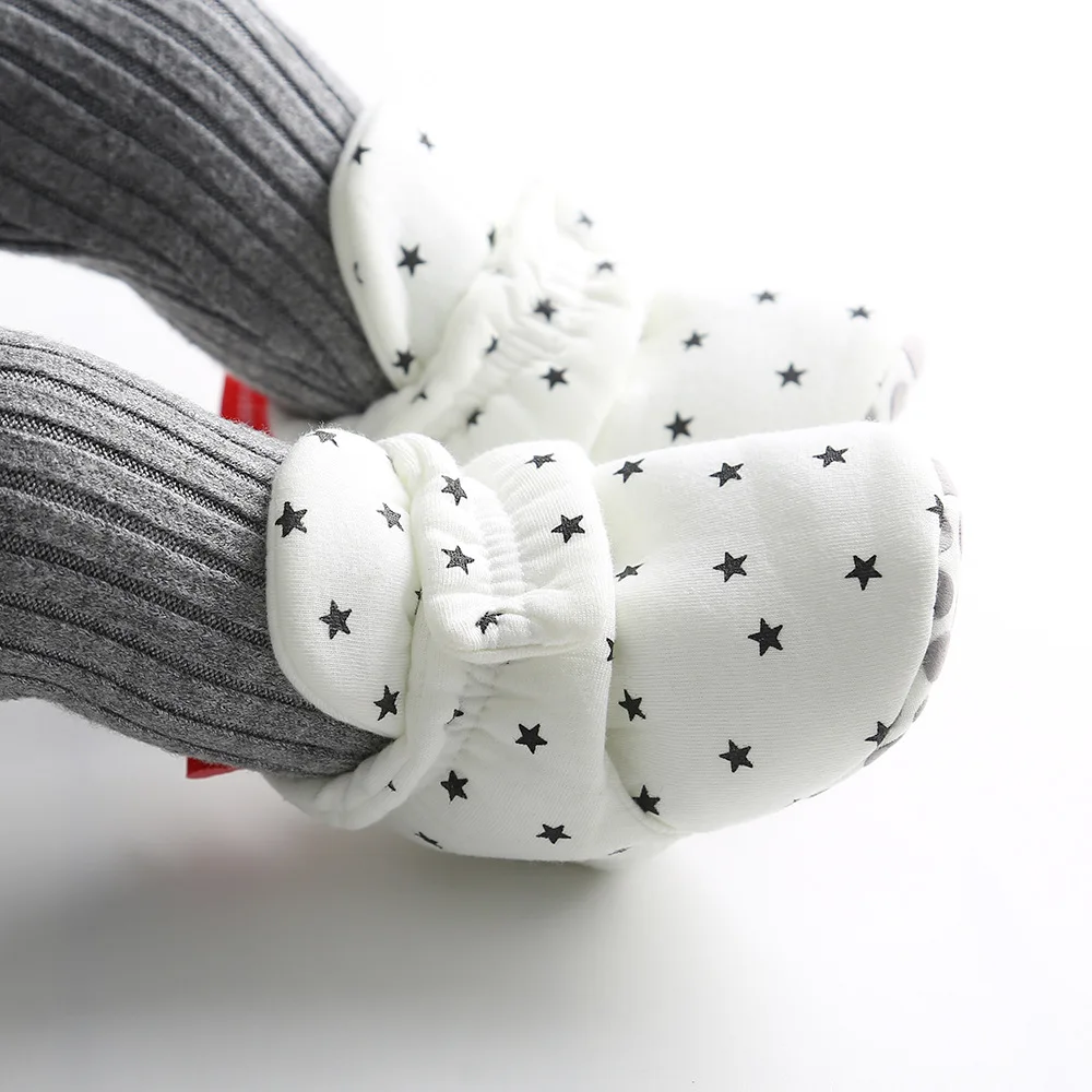 Детская обувь для новорожденных мальчиков и девочек с принтом звезды, полосатые ботинки для первых шагов, рождественские мягкие противоскользящие теплые детские ботинки для кроватки