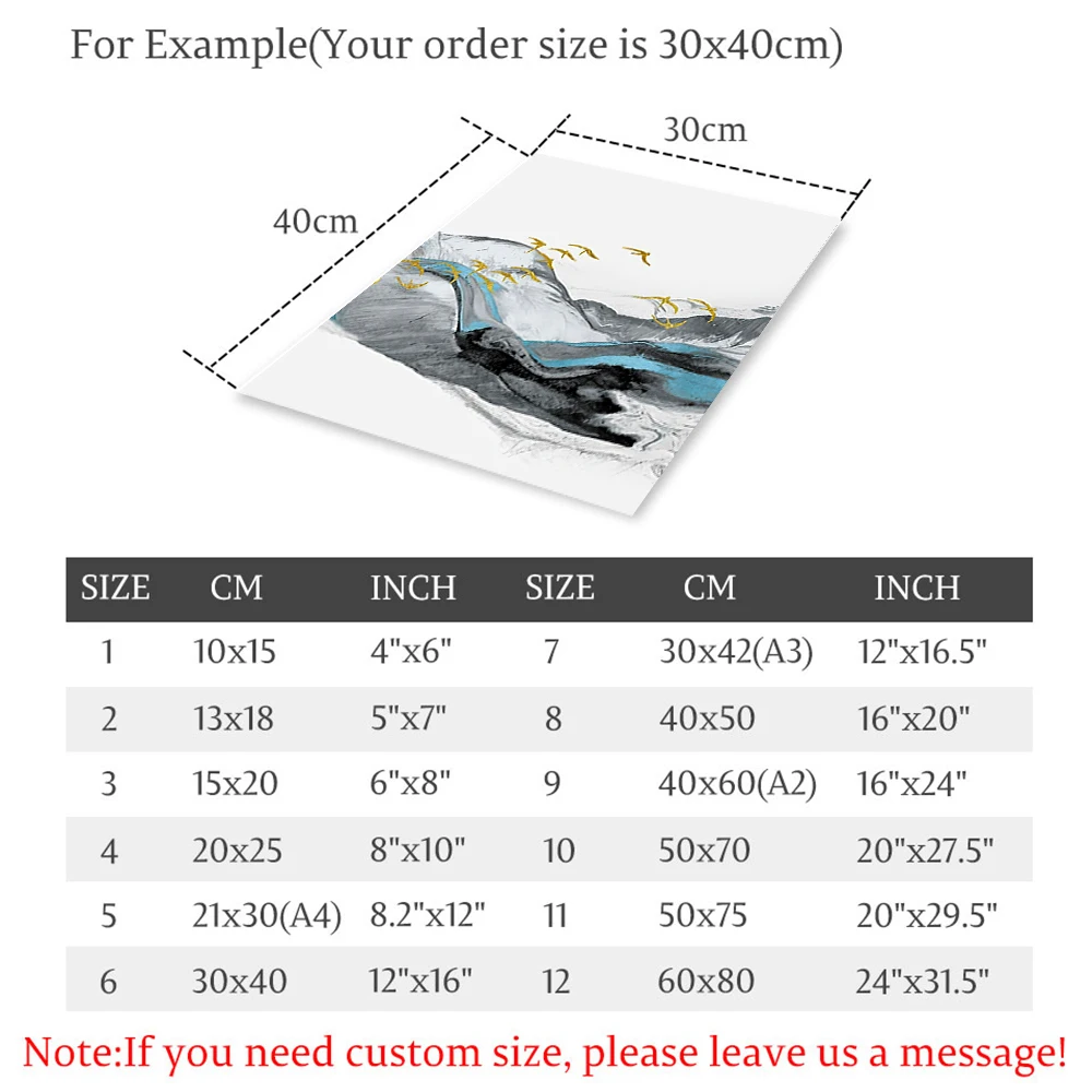 2. Все продукты не содержат рамок или дополнительных границ, соотношение сторон изображения будет изменено на в соответствии с размером, которые вы приобрели (слегка сжаты или обрезаны).