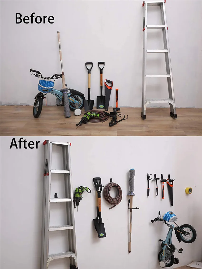 Сверхмощный металлический крючок, гаражный органайзер, настенное крепление, крючки для велосипедов, настенное крепление, нескользящий крючок для хранения лестниц, садовый инструмент
