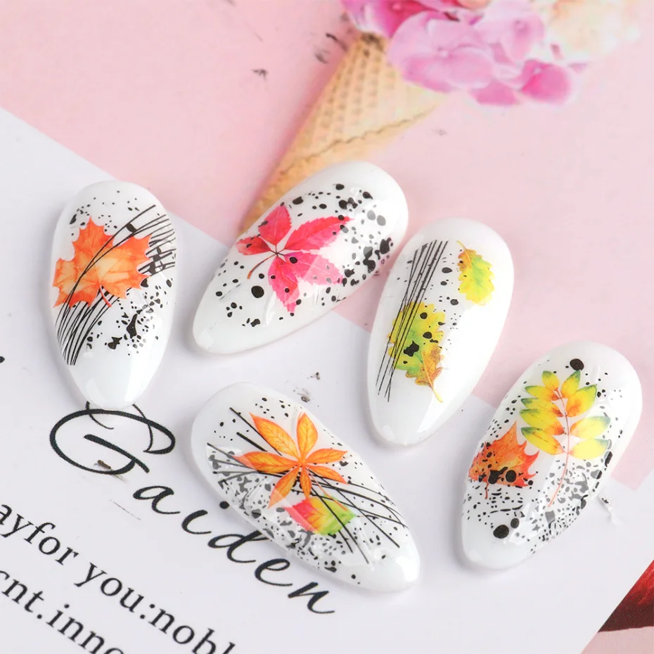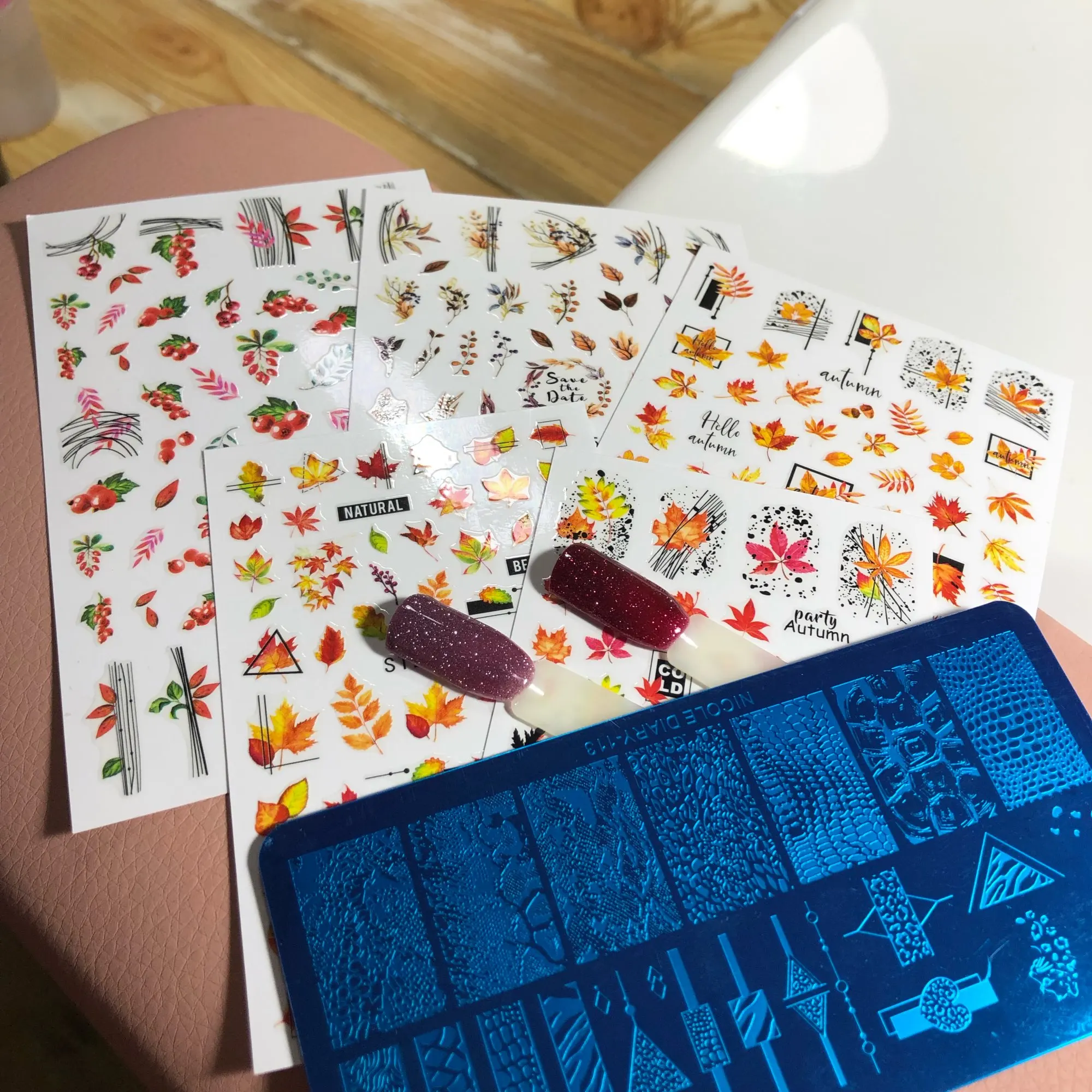 3D наклейки для ногтей, 1 шт., кленовые листья с паутиной, Осенние наклейки для маникюра сделай сам, декоративные Слайдеры для ногтевого дизайна LACS055-057
