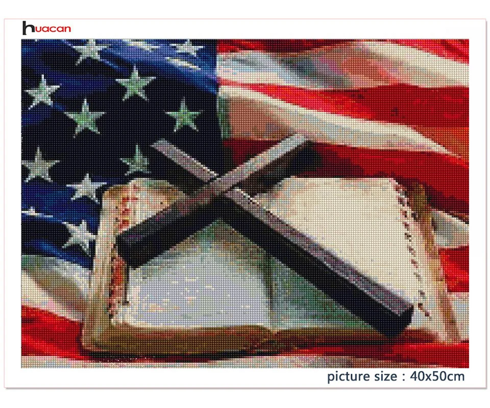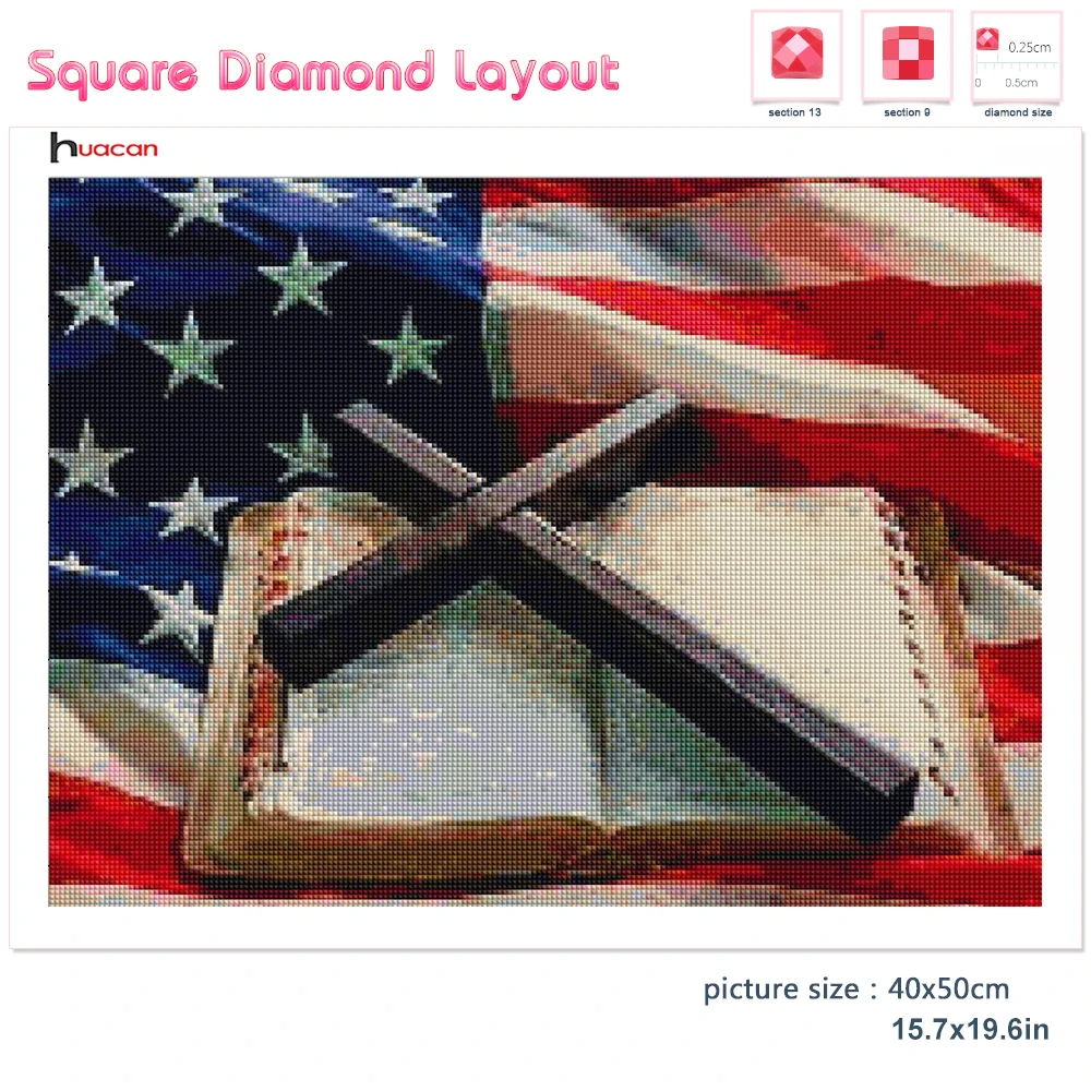 Алмазная живопись Huacan, полноразмерная мозаика с американским флагом, книга с крестом, домашний декор, вышивка, пейзаж, искусство бриллиантов