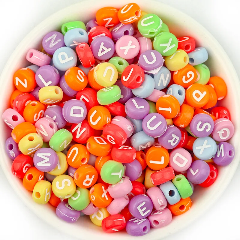 4*7 м акриловые разноцветные круглые плоские бусины с буквенным принтом алфавита для изготовления ювелирных изделий ручной работы Diy браслет ожерелье