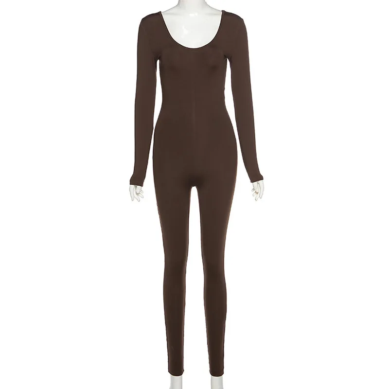 Базовый Облегающий комбинезон для женщин, повседневный коричневый женский комбинезон Y2K, комбинезон для активного отдыха, уличная одежда, 2021