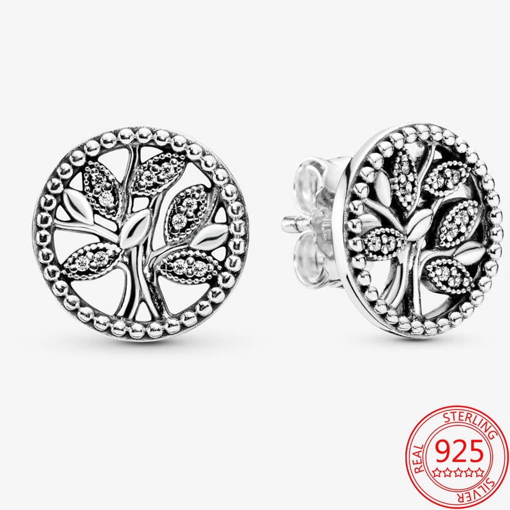 Женские серьги-кольца из серебра 100% пробы, со сверкающим деревом