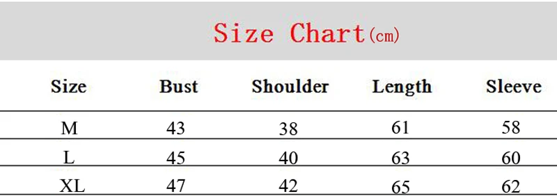 XL Длина: 25,59 Бюст: 37,01 плечо: 16,54 рукав: 24,41