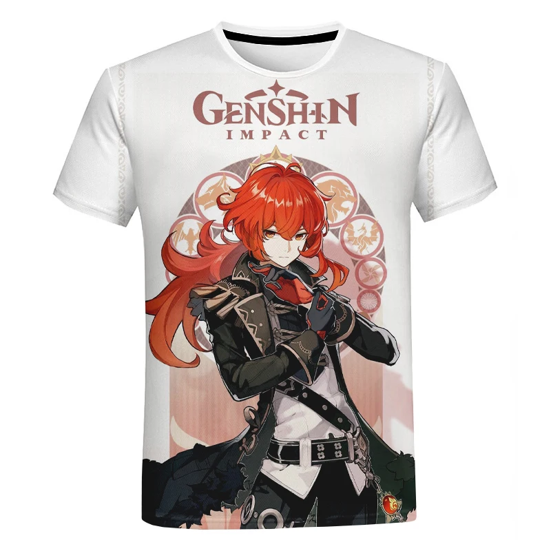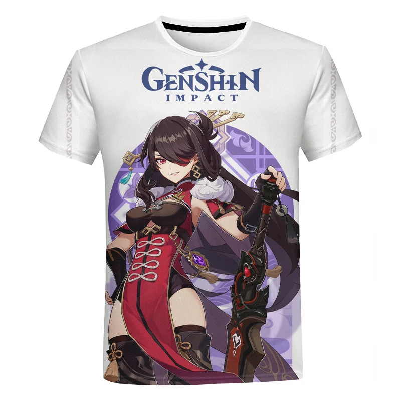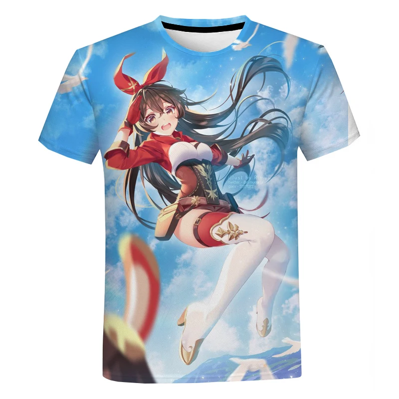 Футболка с 3D-принтом героев аниме Genshin Impact, милая уличная од...