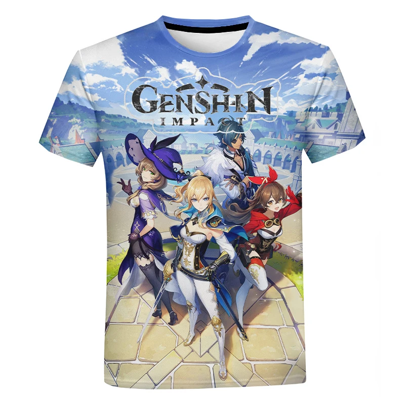 Футболка с 3D-принтом героев аниме Genshin Impact, милая уличная одежда с короткими рукавами для мужчин и женщин, модная повседневная футболка большого размера
