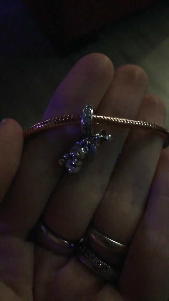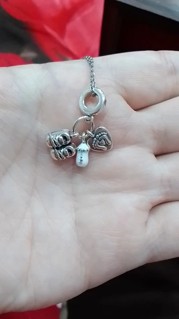Tal y como en la foto pero el chupete es algo más tosco aunque no está mal. Pendiente de usar durante una temporada para ver si realmente es plata o no.