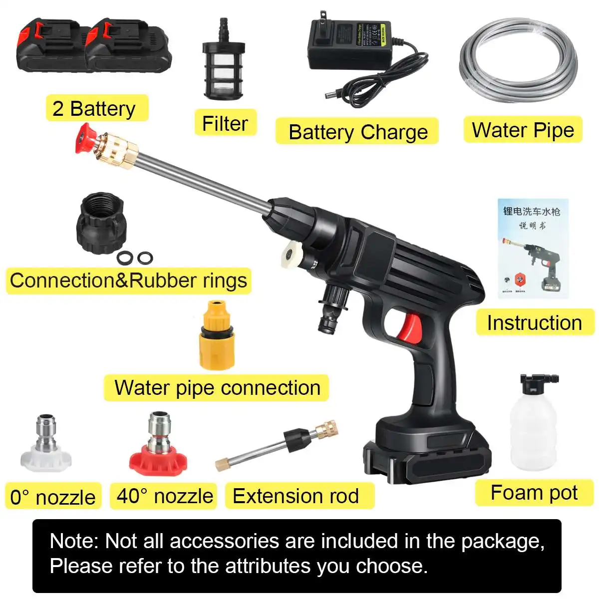 Примечание: 1. Мы предоставляем четкие фотографии и измерения, где это возможно. Пожалуйста, проверьте как можно больше, чтобы убедиться, что товар именно тот, который вам нужен.2. Возможны отклонения в 1-3 см из-за ручного измерения.(1 дюйм = 2,54 см)3. Цвет фактического товара может немного отличаться от цвета на изображениях из-за разных экранов компьютера. Спасибо за понимание. Спецификация: Тип: набор машин для мойки автомобилейМатериал: АБС-пластик + нержавеющая стальЦвет: черныйВыходное напряжение: 288VFМощность: 800 ВтМаксимальное давление: 28 барРазмер: 43x21x7,5 см (как показано на рисунке)Время работы: 30 минутДлина выпускной трубы: 5 мБатарея (опционально): 1 шт./2 шт. Особенность: ● Многофункциональный водяной пистолет может по желанию переключать тип воды, а поток воды можно постепенно регулировать от малого до большого, вращая насадку, А веерообразную и прямую регулировку водной линии можно переключать по желанию.● Портативный самовсасывающий, более быстрый и прочный, встроенный тонкий фильтр из нержавеющей стали, высокоэффективный и глубокая фильтрация примесей в воде.● Мощный Срок службы батареи, литиевая батарея значительно продлевает срок службы машины● Его можно использовать как водяной пистолет для мытья, инструменты для полива сада.● Идеально подходит для полива сада, сельскохозяйственного орошения, мойки автомобилей, уборки дома и так далее.● Использование: уборка автомобилей, лодок, моторных домов, проездов, палуб, велосипедов, садов, дворов, тротуаров и т. д.Предупреждение безопасности:Безопасное предупреждение об аккумуляторной батарее(1) не разбирайте, не открывайте и не разрезайте аккумулятор.(2) запрещено короткое замыкание аккумуляторного блока. Не кладите аккумуляторы в коробку или ящик по желанию, чтобы избежать короткого замыкания между ними или другими металлическими предметами.(3) запрещено подвергать аккумуляторы воздействию источников тепла или пламени. Избегайте хранения под прямыми солнечными лучами.(4) не извлекайте аккумуляторы или батареи из оригинальной упаковки перед использованием.(5) запрещено организовывать батарею при механическом воздействии.