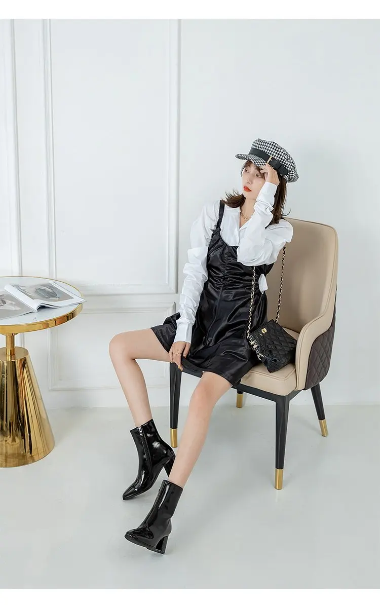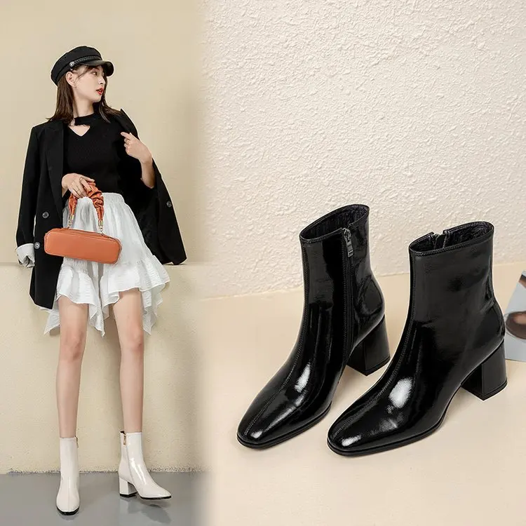 Женские ботинки из мягкой лакированной кожи, черные и белые ботинки...