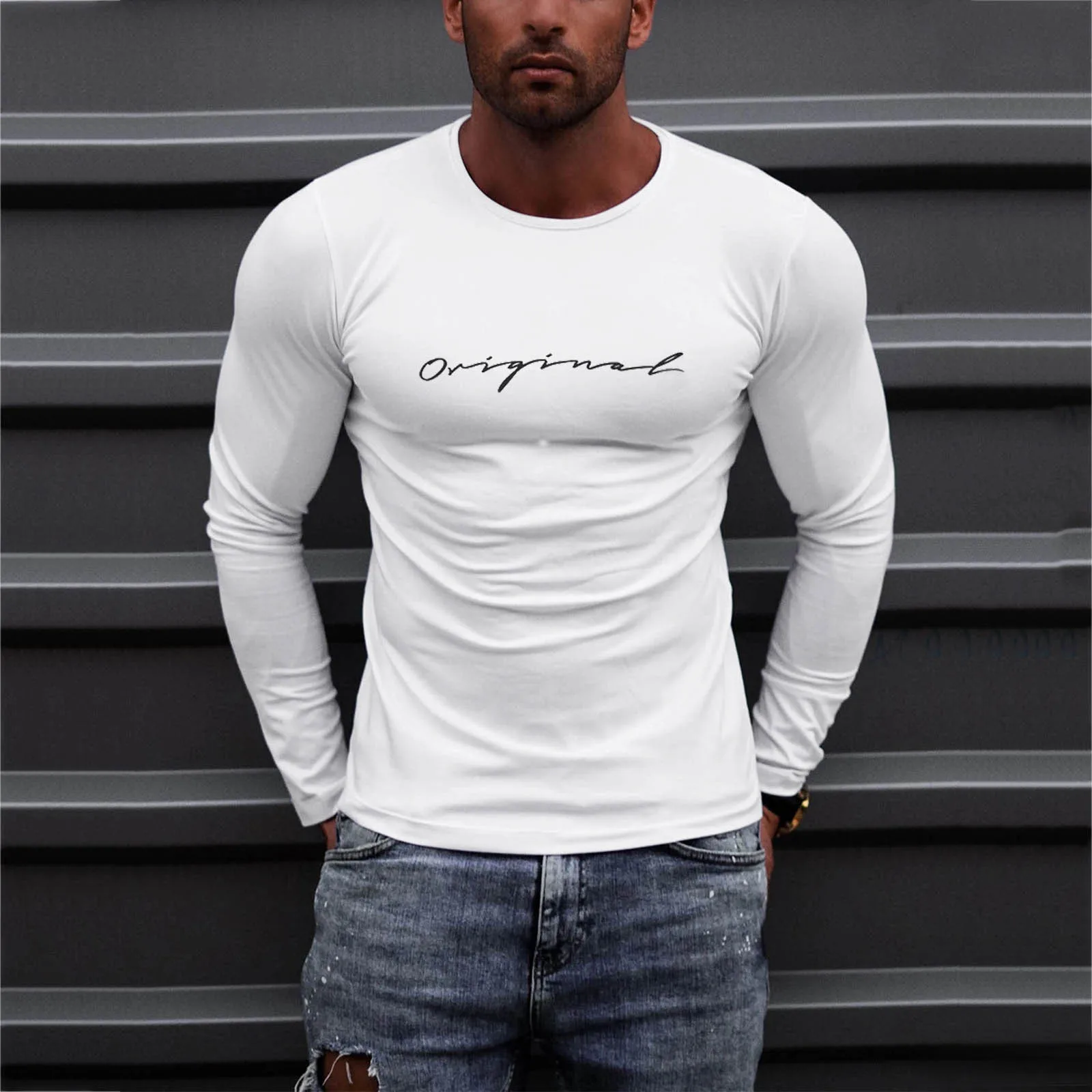 Летняя модная мужская футболка с длинным рукавом и буквенным принтом, простая облегающая Повседневная футболка с круглым вырезом, топ, блузка, топы высокого качества