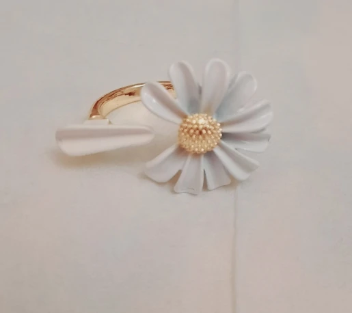 Кольцо женское, белое, эмалированное, с цветком маргаритки, винтажн...
