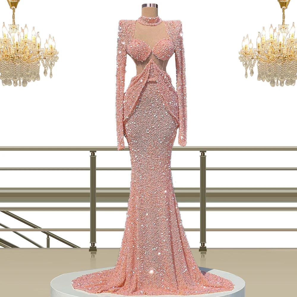 Женское вечернее платье знаменитости, розовое платье с блестками, роскошное элегантное платье для выпускного вечера, 2021