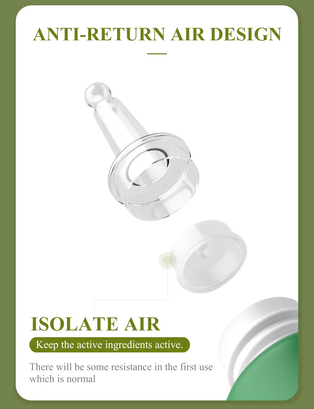 ▶Изолируйте воздух-Держите активные ингредиенты активными. Будет некоторое сопротивление при первом использовании, что является нормальным.