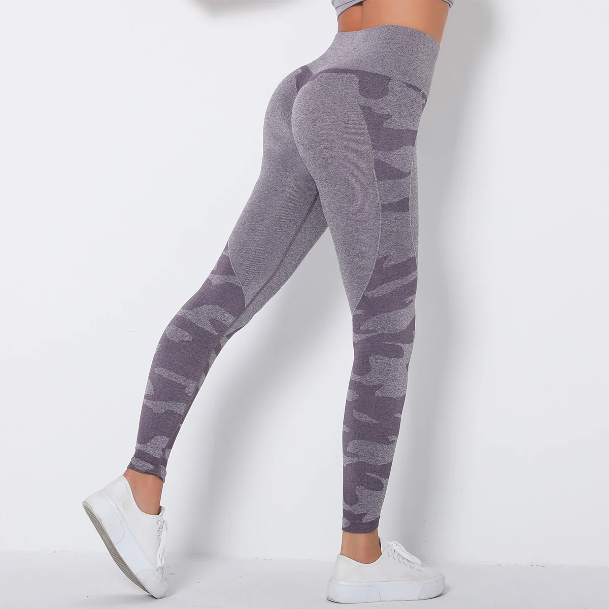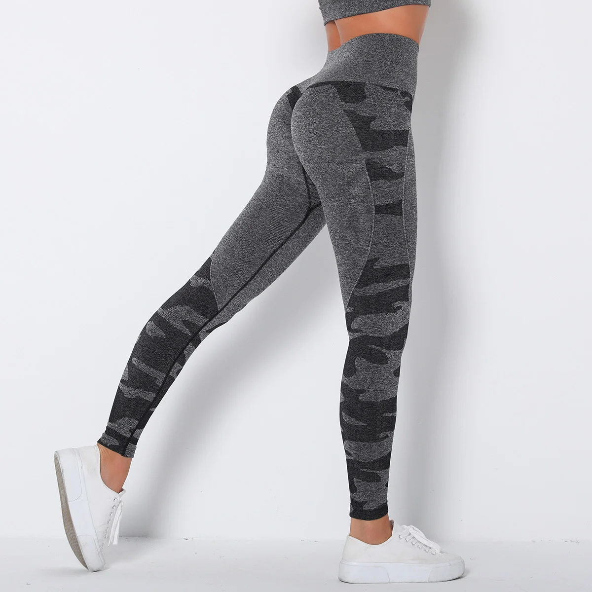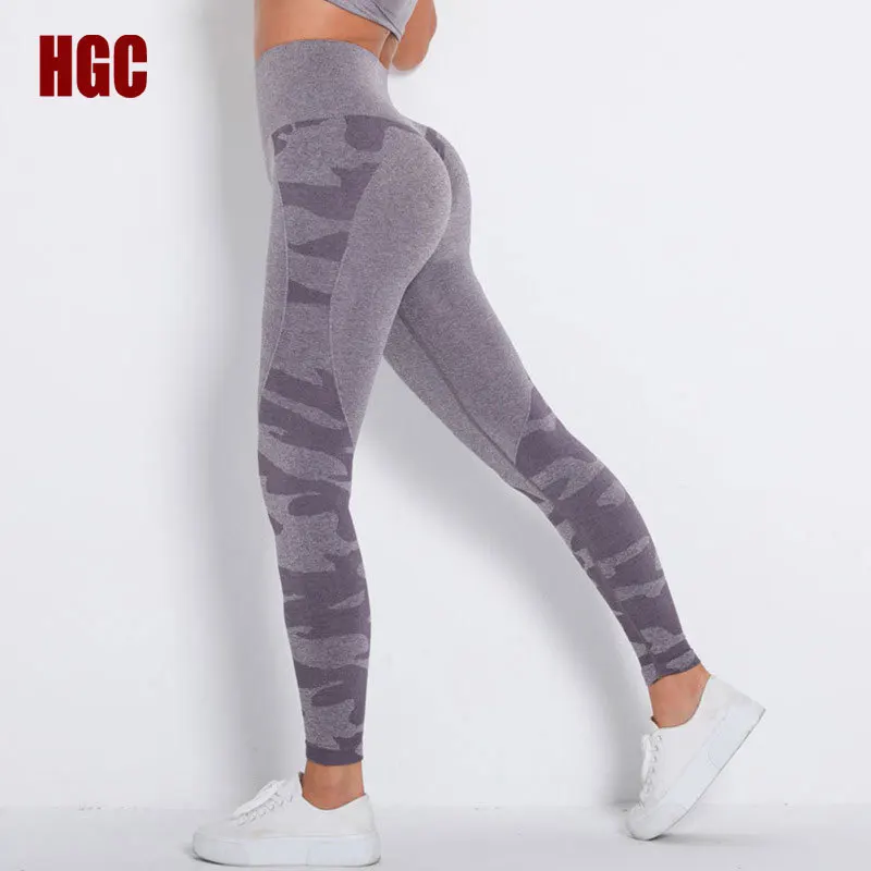 Бесшовные Леггинсы HGC для спортзала, женские эластичные штаны для йоги с высокой талией, пикантные камуфляжные леггинсы для фитнеса и тренировок