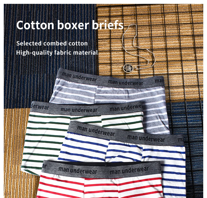 Трусы-боксеры мужские хлопковые, модные шорты в полоску, средняя талия, европейские размеры, нижнее белье