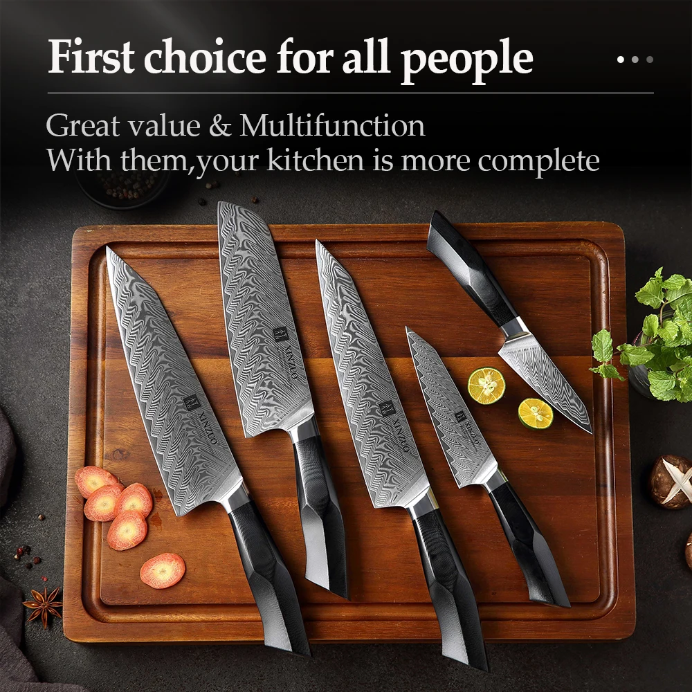 Набор ножей XINZUO VG10 из дамасской стали, Комплект кухонных резцо...