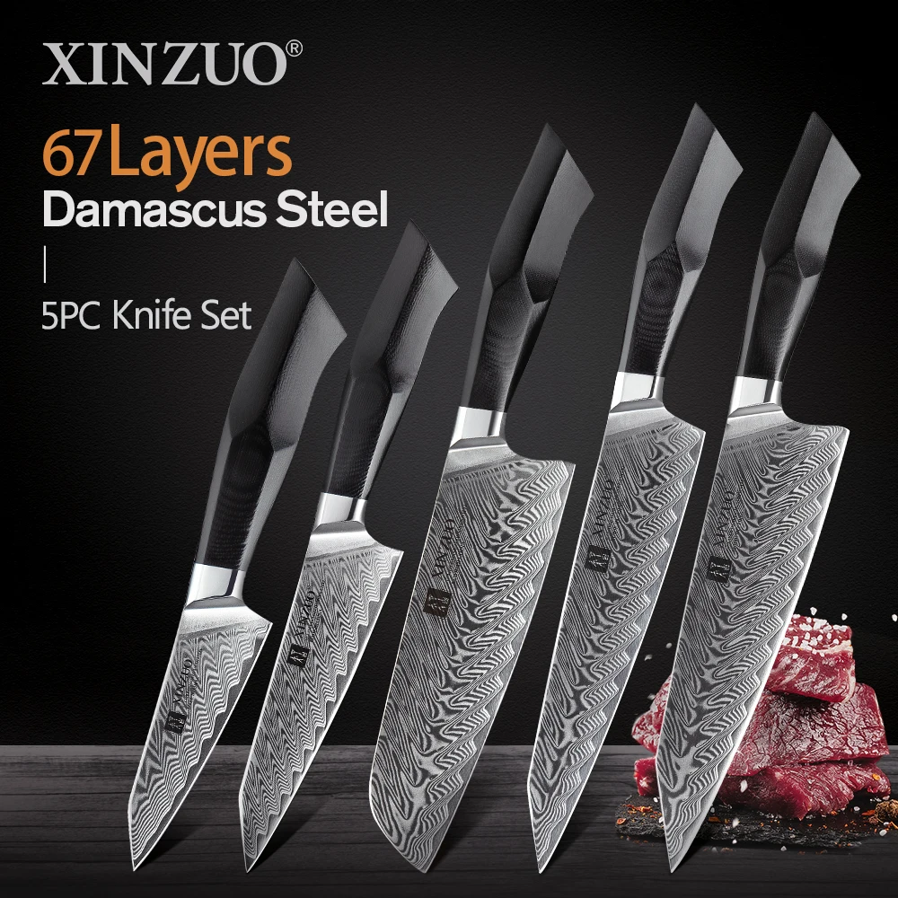 Набор ножей XINZUO, 5 шт., рукоятка G10, VG10, дамасская сталь, высокоуглеродистые японские кухонные ножи шеф-повара, набор ножей из нержавеющей стали 2020