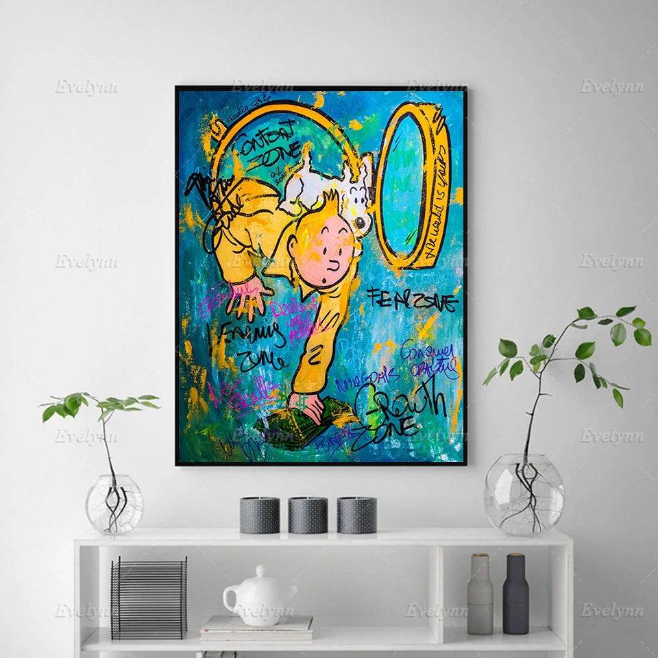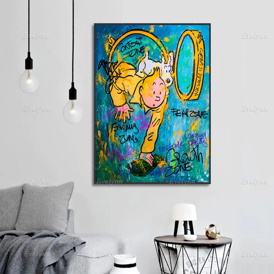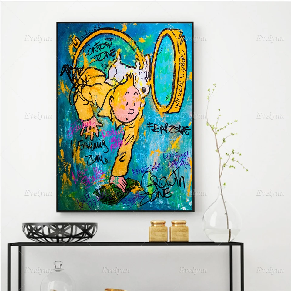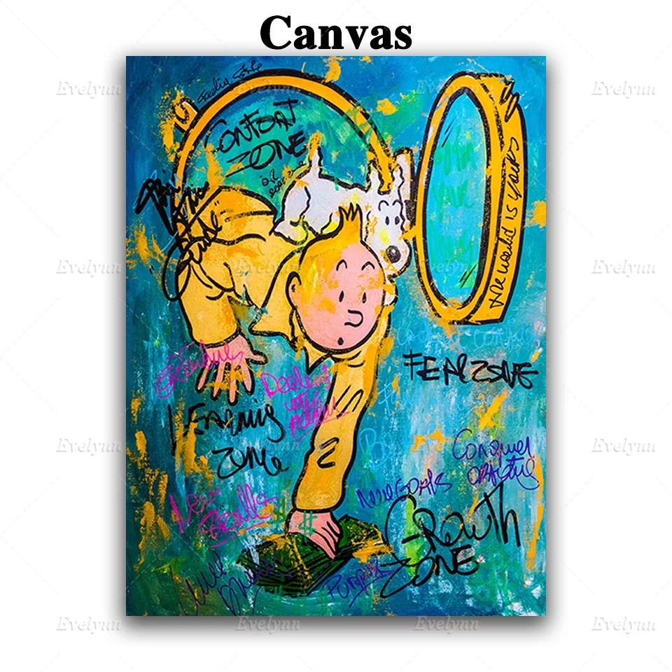 Художественный плакат Tintin And Dog с изображением граффити на холсте, модульные картины для гостиной, рамка для домашнего декора