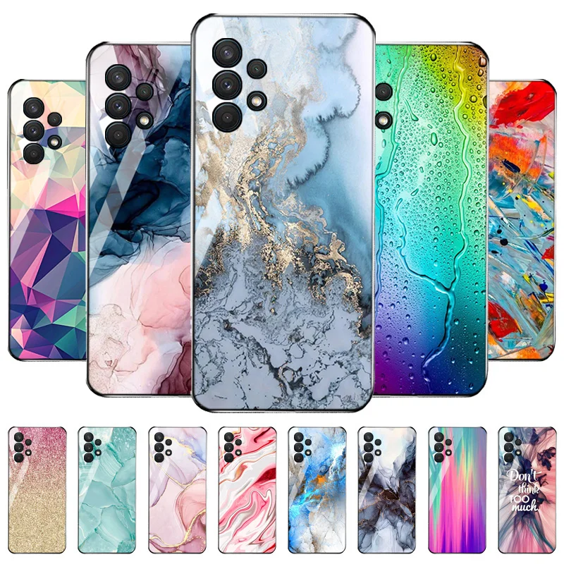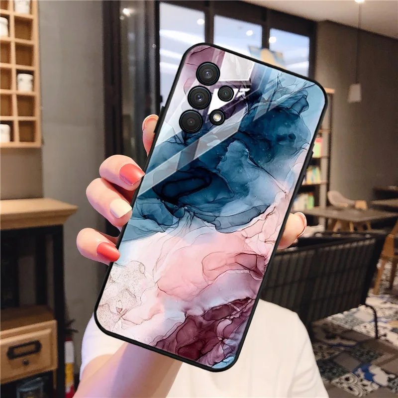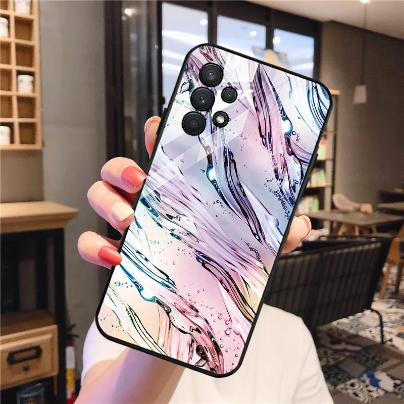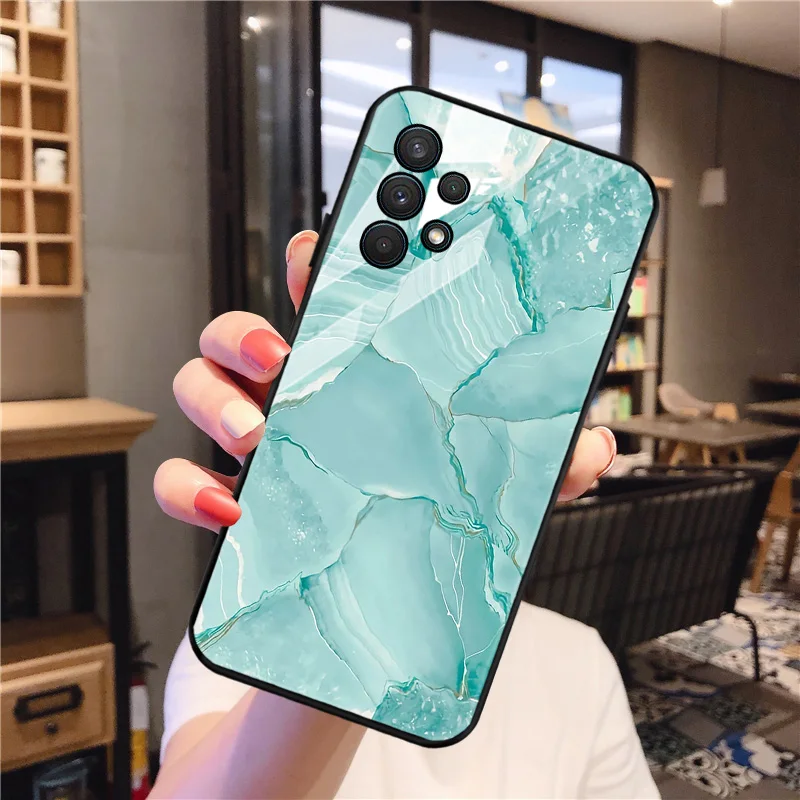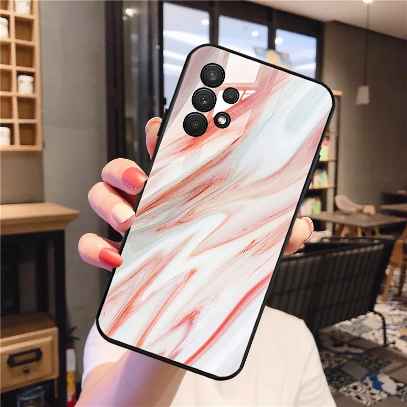 Mobile Phone Case 5Marble Tempered Glass Case on For Samsung A32 Case Cover