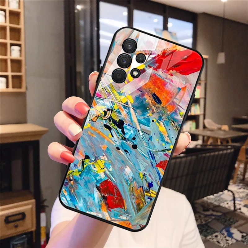 Mobile Phone Case 13Marble Tempered Glass Case on For Samsung A72 Case Cover