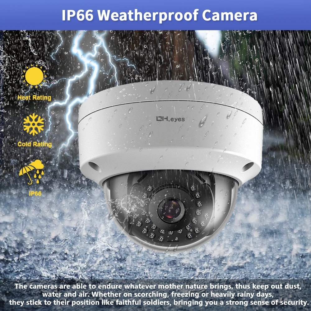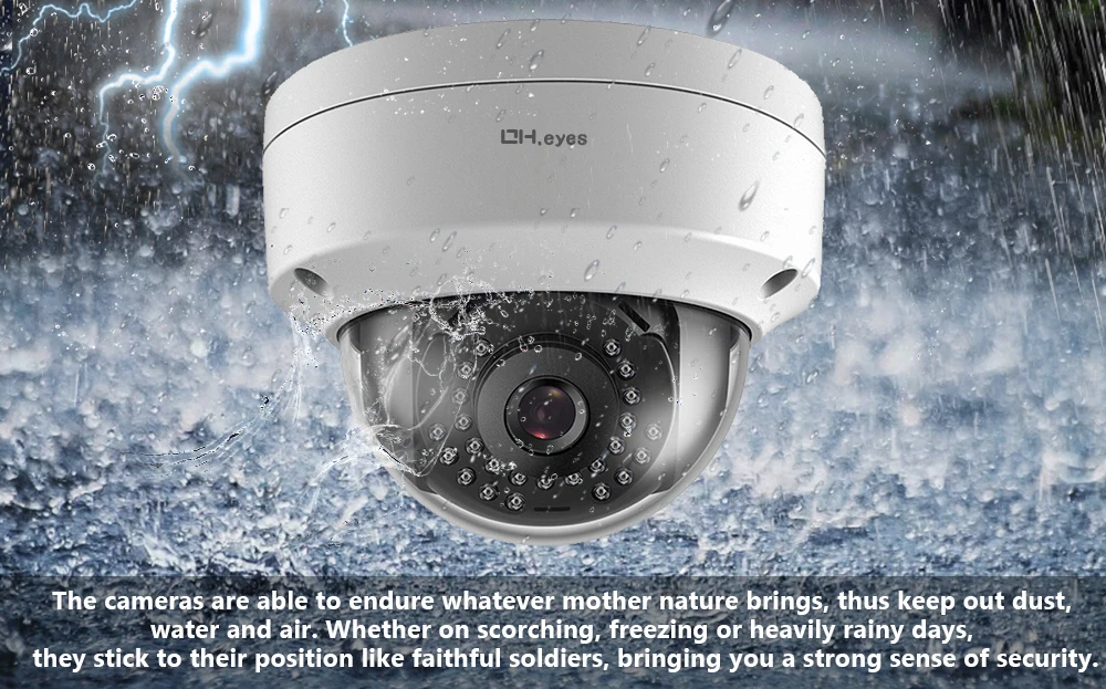 Используйте их в качестве наружных камер или крытых камер, так как они построены жестко, выдерживает любую погоду: дождь, снег, пыль и жаркие дни. С защитой от атмосферных воздействий IP66 и кабелями, просвечивающимися через подставку для защиты, гарантируем, что вы сможете ответить на их производительность, день в день. Наша камера имеет сверхпрочный металлический корпус, профессиональный IP66, устойчивый к атмосферным воздействиям, обеспечивая стабильную производительность как внутри, так и снаружи.