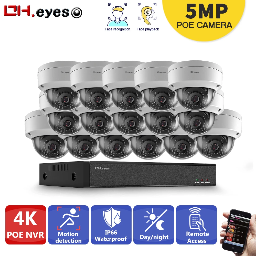 H.265 распознавание лица 5MP купольная наружная IP66 Всепогодная система безопасности POE 4K 8CH 16CH система безопасности NVR с 16 шт. 5MP комплекты камер видеонаблюдения