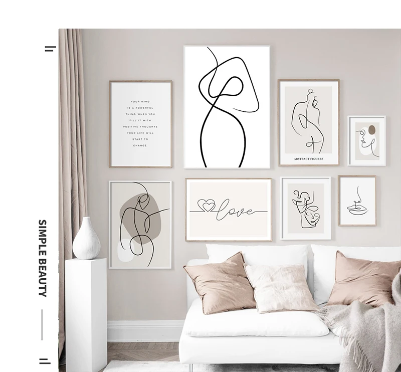Скандинавский домашний декор, настенная Картина на холсте, бежевый ...