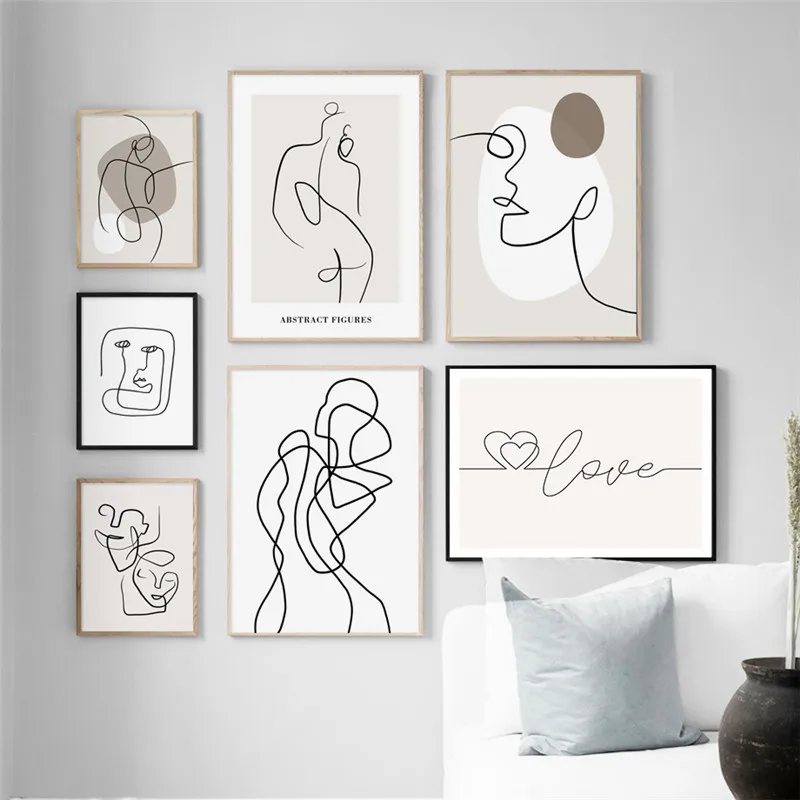 Современный домашний декор, абстрактная линия, рисунок, картина, на...
