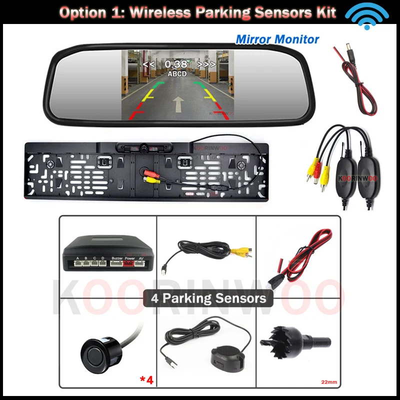 Система парктроника Koorinwoo, Европейский детектор радаров для автомобилей, без проводов, система датчиков парковки с камерой