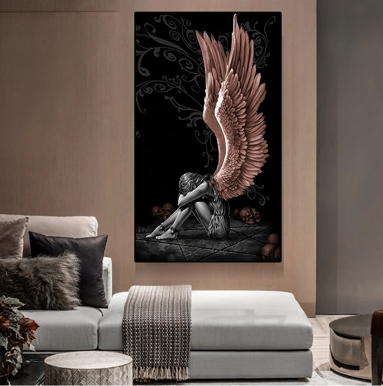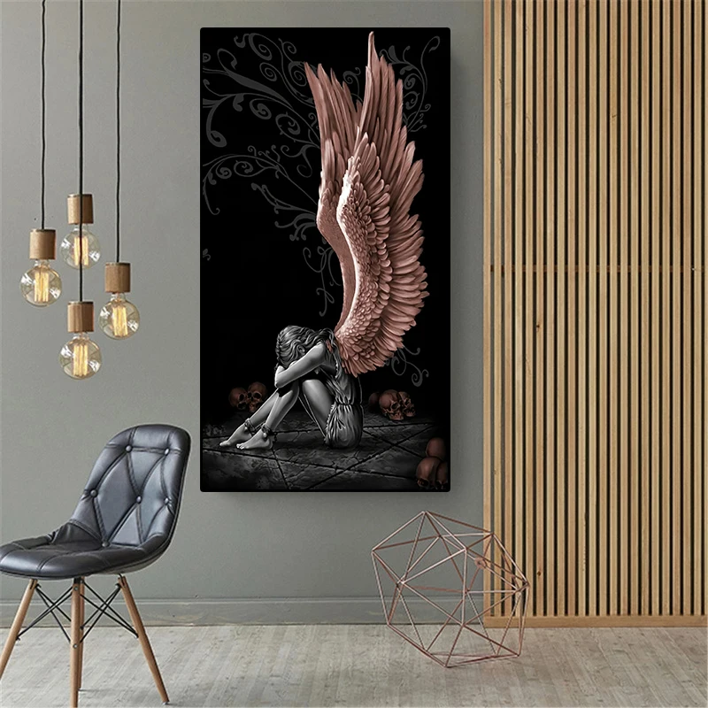 Постеры на холсте с изображением демонов ангелов и красных крыльев, Настенная картина с черными ангелами для гостиной, крыльца, домашний декор без рамки
