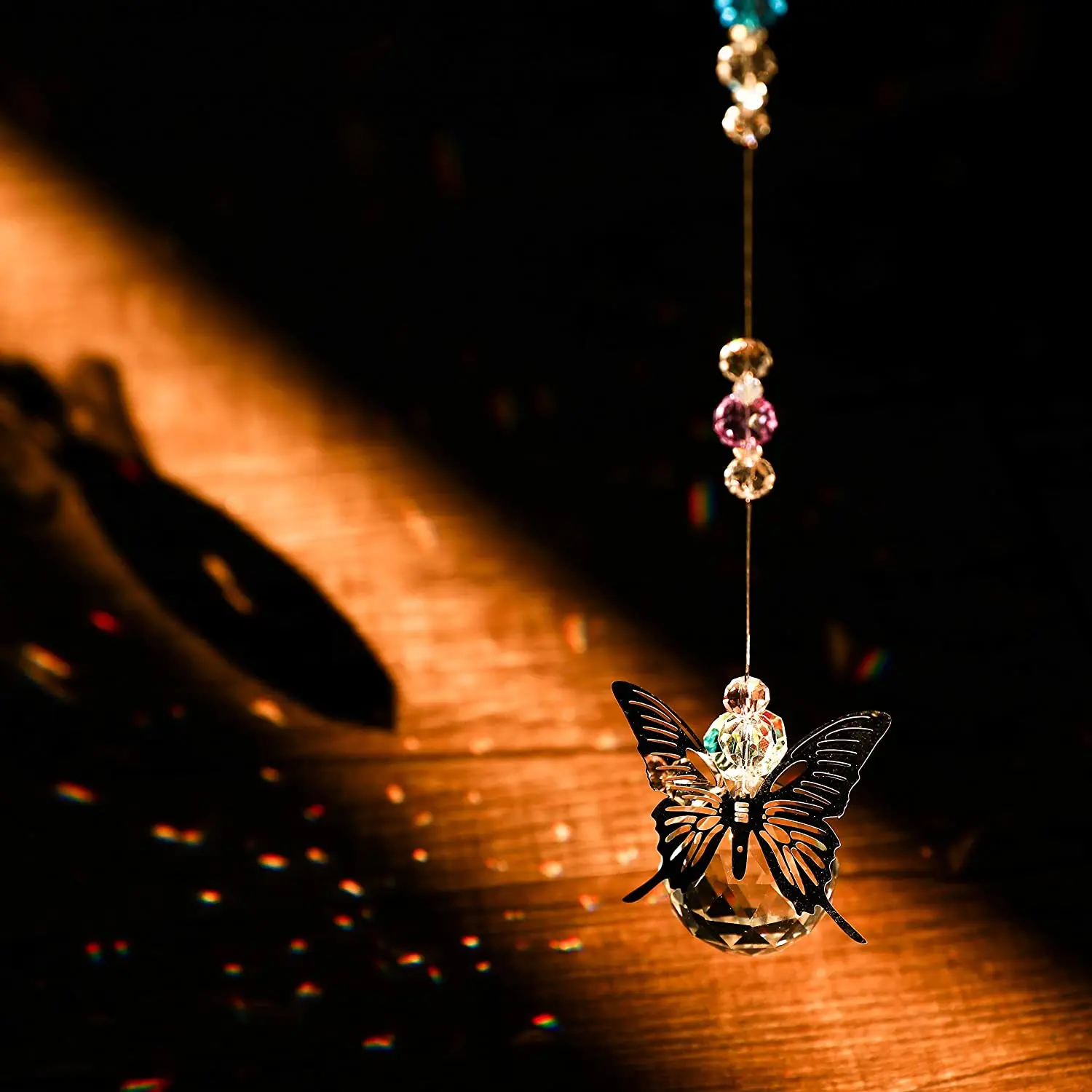 Ручная работа, Бабочка, прозрачный хрустальный шар, призма, подвеска, Рождество для дома, офиса, украшение для сада, украшение для окна, подвеска